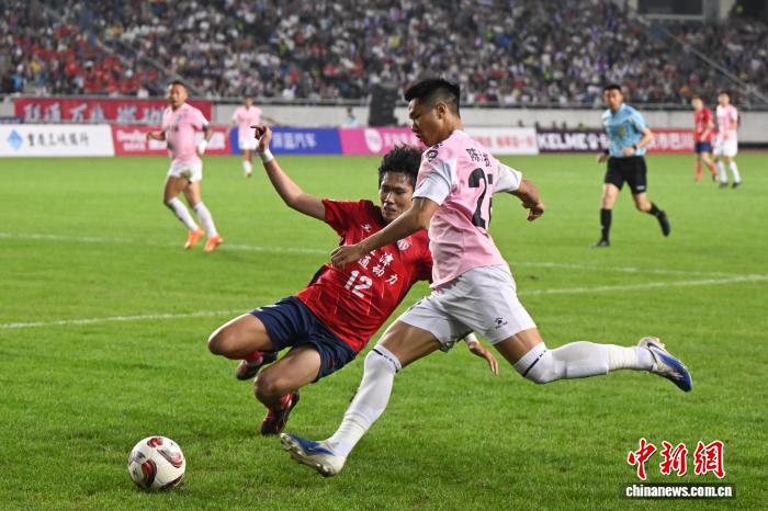 4月12日早,“新韵沉庆 渝超偕行”2025沉庆乡市脚球超等联赛(简称“渝超”)绝赛正在沉庆奥体重心举办,终究,二江临空队以2比1打败江润泽通能源队,得到尾届“渝超”冠军。图为二江临空队球员(粉衣)取江滋润通能源队球员(白衣)正在角逐中拼抢。中新社记者 何蓬磊 摄