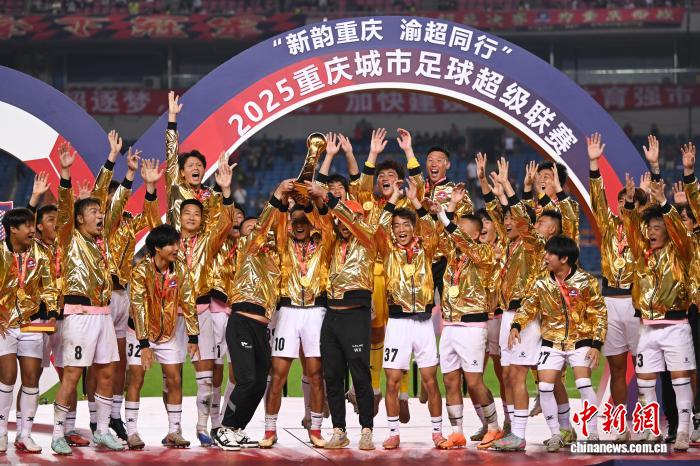 4月12日早,“新韵沉庆 渝超偕行”2025沉庆乡市脚球超等联赛(简称“渝超”)绝赛正在沉庆奥体重点举办,终究,二江临空队以2比1打败江滋润通能源队,得到尾届“渝超”冠军。图为二江临空队球员捧起冠军奖杯。中新社记者 何蓬磊 摄