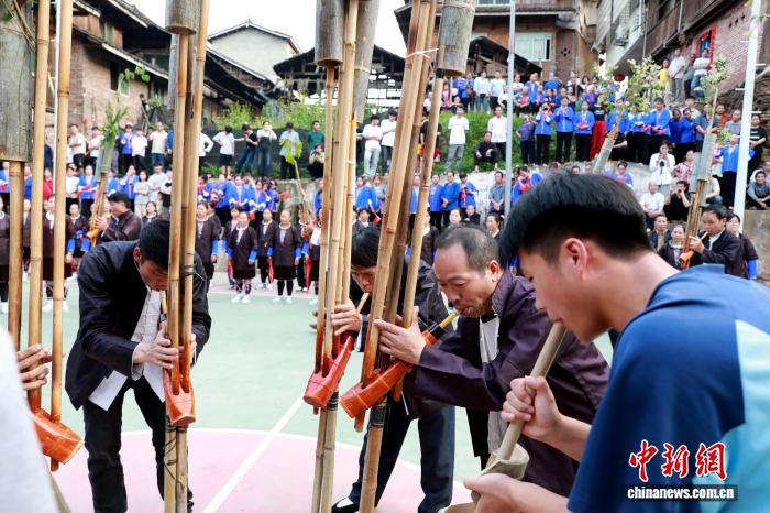 图为公众正在吹芦笙。龚普康 摄